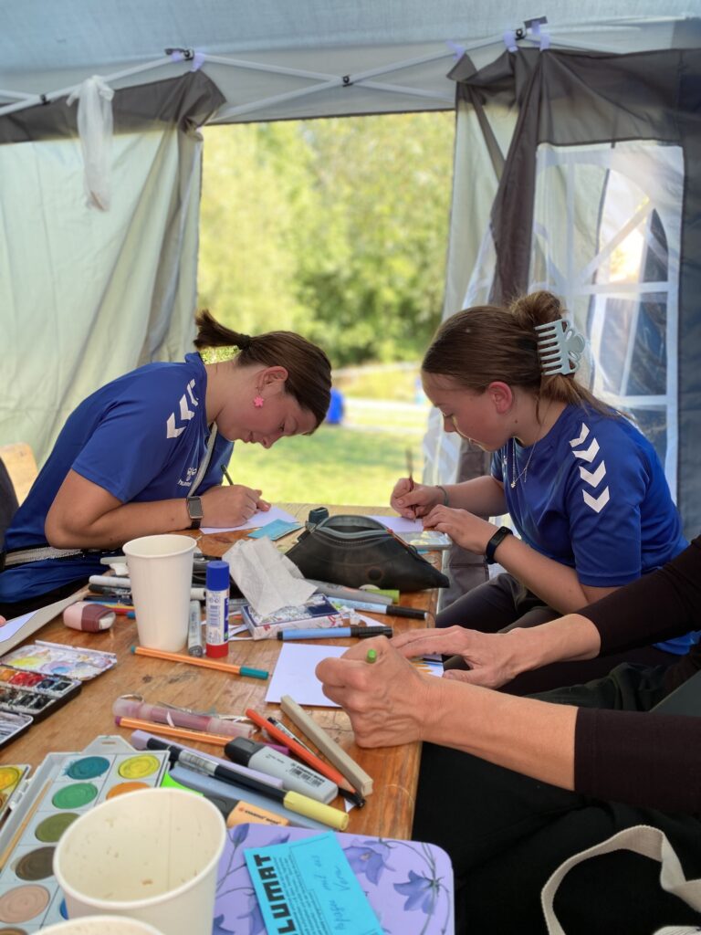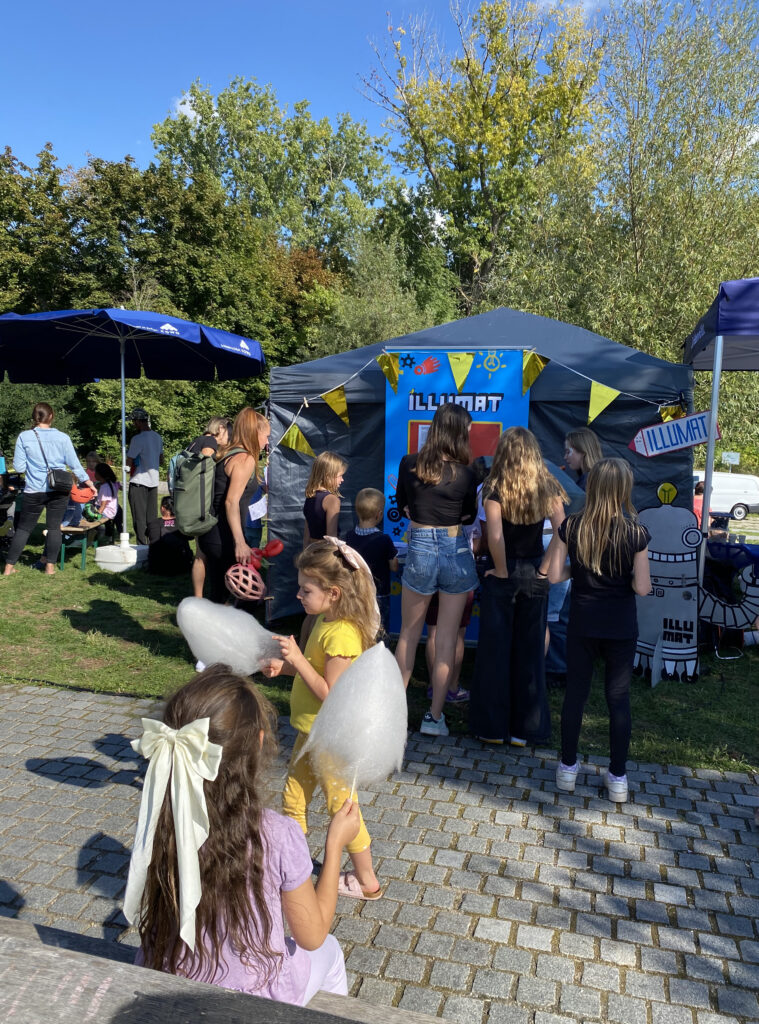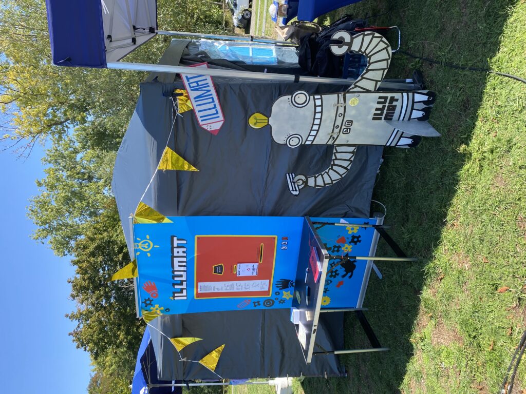 Bemerkenswert: Platz zum Zeichnen ist in der kleinsten Hütte! Der ILLUMAT-Kubus war schon auf Tour und wir haben es uns in mit dem ILLUMAT-Roll-Up in einem Pavillon eingerichtet.
