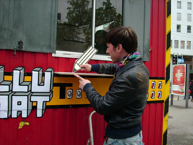 Publikum: Eine Woche Zeichenaktion im Bauwagen auf dem Löwenplatz: für Festivalgäste, die Luzerner und Touristen + Abschlußparty des Fumetto.